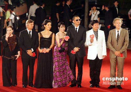圖為金爵獎(jiǎng)國(guó)際評(píng)委亮相,他們是德國(guó)制片人烏里希、中國(guó)導(dǎo)演霍建起、中國(guó)香港導(dǎo)演王家衛(wèi)、日本明星桃井熏、著名演員陳沖、丹麥導(dǎo)演比爾和以色列女演員吉拉(右起)。中新社發(fā) 潘索菲 攝