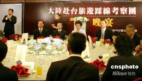 六月十六日,大陸赴臺(tái)旅游踩線(xiàn)考察團(tuán)一行抵達(dá)臺(tái)北。當(dāng)晚,臺(tái)灣海峽兩岸觀光旅游協(xié)會(huì)在臺(tái)北市晶華酒店設(shè)歡迎晚宴款待考察團(tuán)。中新社發(fā) 許曉青 攝