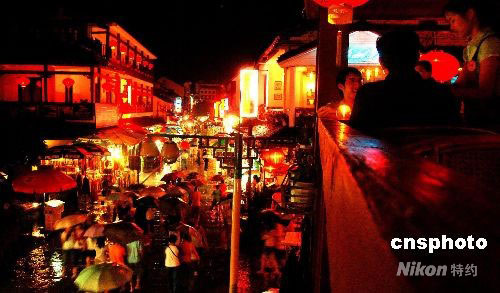 6月17日晚,中外游客在陽(yáng)朔西街觀光休閑。遭受特大洪災(zāi)“洗禮”的廣西陽(yáng)朔縣西街,連日來(lái)重現(xiàn)游客云集繁華景象。6月13日,50年一遇的特大洪水使陽(yáng)朔成了一片澤國(guó),西街成了“水街”,全縣旅游業(yè)受到重創(chuàng)。14日洪水消退后,全縣旅游秩序恢復(fù)正常。中新社發(fā) 賀振敏 攝