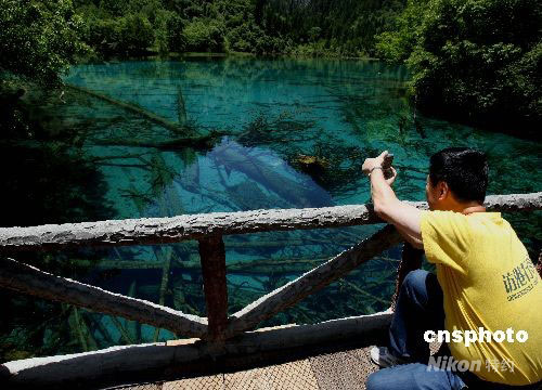 6月18日,一位香港心理教育志愿者完成災(zāi)區(qū)服務(wù)任務(wù)后,路過震后九寨溝,拍攝分外寧靜的美景。四川汶川大地震絲毫未損四百公里外的九寨溝,風(fēng)景區(qū)旅游設(shè)施完善如初,六月底前將部分恢復(fù)旅行社組團旅游,游客主要通過航空和甘肅省以及四川省的繞行公路進出。地震以來,這里每天都接待一些散客。中新社發(fā) 賈國榮 攝