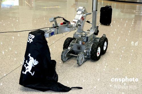 圖:北京海關(guān)奧運防爆演習(xí)利用機器人排險