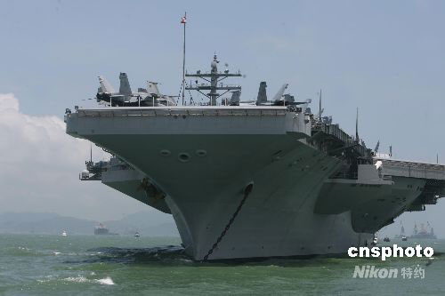 六月十九日,全球最大、最先進的核動力航空母艦美國“里根號”及其戰(zhàn)斗群抵達香港,進行為期三至四日的訪問。這是二00六年以來“里根號”的第三次訪港。中新社發(fā) 武仲林 攝
