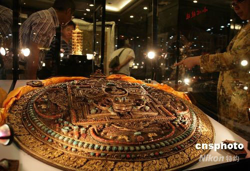 6月19日,中拍國(guó)際2008大型藝術(shù)品拍賣會(huì)的拍前預(yù)展在北京亞洲大酒店舉行,拉開此次大型春拍的序幕。據(jù)悉,拍賣會(huì)將于21日、22日兩天正式開拍,內(nèi)容包括瓷器、佛像、金銀器、書畫等罕見精品。中新社發(fā) 趙雋 攝