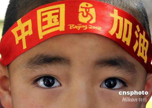 圖:格爾木兒童為奧運(yùn)加油