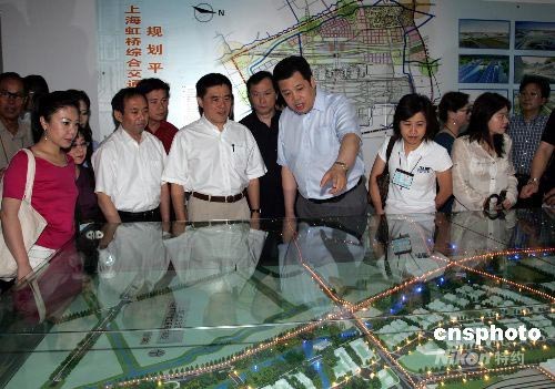 6月24日,臺(tái)北市長(zhǎng)郝龍斌專程考察上海虹橋綜合交通樞紐工程,意在建立臺(tái)北松山機(jī)場(chǎng)至上海虹橋機(jī)場(chǎng)新直航點(diǎn),共同形成“兩小時(shí)經(jīng)濟(jì)圈”。中新社發(fā) 潘索菲 攝