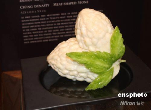 “白玉錦荔枝”原擺放在北京故宮乾清宮東暖閣,原件是仿雕苦瓜。主廚選用臺灣精致農業(yè)的代表產品之一的“蘋果苦瓜”做食材,這種苦瓜外表白胖圓潤,其造型與故宮文物原件十分相似,拌以沙拉醬,味甘甜。中新社發(fā) 耿軍 攝