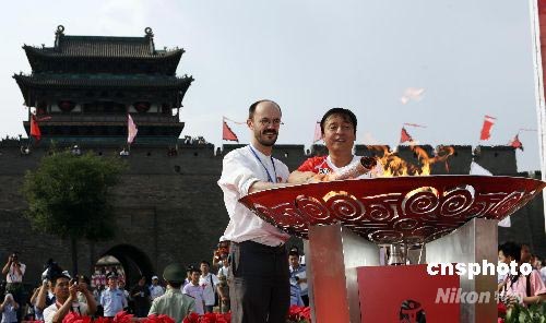 圖:奧運(yùn)火炬在山西平遙傳遞