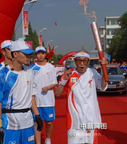 現年九十一歲的李智老先生是年齡最大的一位火炬手,他曾兩次與自行車隊友從大同出發(fā)到北京聲援奧運,倡導全民健身。張雷杰攝