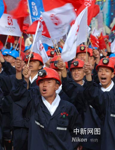 大同礦藏資源豐富,素有“煤都”之稱,是我國重要的優(yōu)質(zhì)動(dòng)力煤生產(chǎn)基地。圖為煤礦工人來到火炬?zhèn)鬟f現(xiàn)場,為奧運(yùn)加油喝彩。張雷杰 攝