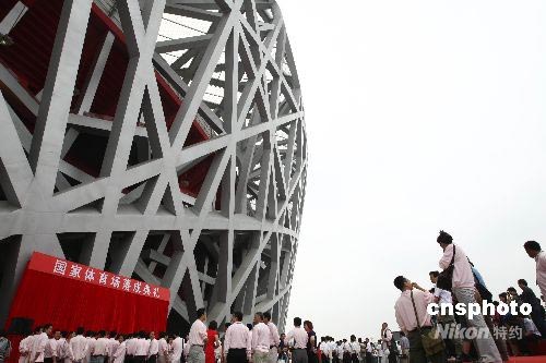 6月28日,國家體育場(“鳥巢”)落成典禮在北京舉行。國家體育場“鳥巢”系第29屆夏季奧運(yùn)會主體育場,位于奧林匹克公園內(nèi),占地21.4公頃,建筑面積25.8萬平方米,南北長333米,東西寬298米,高68米,賽時坐席9.1萬個,是目前世界上跨度最大的鋼結(jié)構(gòu)體育建筑之一。 中新社發(fā) 盛佳鵬 攝