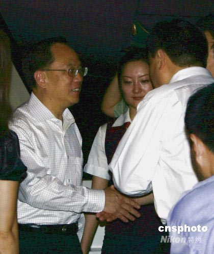 6月27日晚9點(diǎn)55分,香港特首曾蔭權(quán)一行乘坐CA428航班抵達(dá)成都雙流國(guó)際機(jī)場(chǎng),28日將與澳門(mén)特首何厚鏵一起前往彭州和都江堰看望災(zāi)民及考察災(zāi)后重建情況。中新社發(fā) 黃永莉 攝