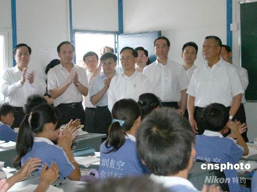 圖:曾蔭權(quán)何厚鏵看望災(zāi)區(qū)臨時學(xué)校學(xué)生