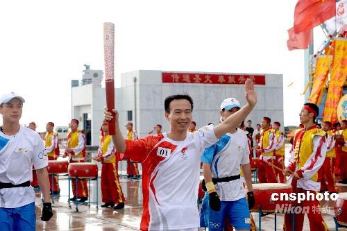 圖:英雄航天員費(fèi)俊龍領(lǐng)跑航天城首棒火炬