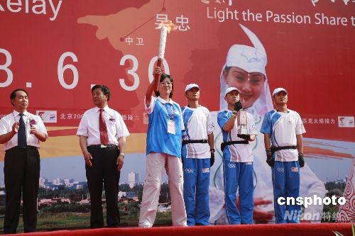 6月30日,奧運(yùn)火炬在寧夏吳忠傳遞。中新社發(fā) 蘆河 攝