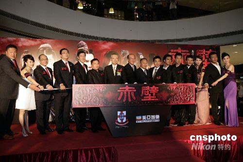 六月三十日晚,由吳宇森導演的電影《赤壁》在香港舉行慈善首映,特區(qū)教育局局長孫明揚、東華三院董事局成員及美亞娛樂咨詢集團公司代表、劇中主要演員張豐毅、金城武、張震、梁朝偉、林志玲、胡軍、宋佳等出席。中新社發(fā) 王麗南 攝