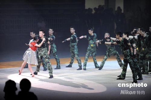 解放軍駐港部隊(duì)在慶香港回歸祖國(guó)11周年文藝匯演上演出抗震救災(zāi)節(jié)目。中新社發(fā) 洪少葵 攝
