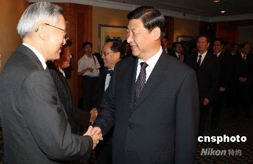 7月7日,首次訪問香港的中國國家副主席習(xí)近平在海逸酒店會見香港特區(qū)行政、立法、司法機(jī)關(guān)負(fù)責(zé)人。中新社發(fā) 任海霞 攝