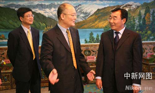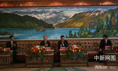 圖為西藏自治區(qū)黨委書記張慶黎、自治區(qū)黨委常委、秘書長公保扎西會見趙陽、劉北憲一行。賈長飛 攝影
