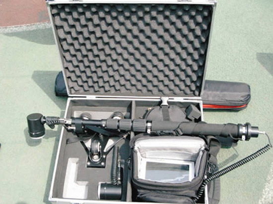 這種視頻探測(cè)器是于去年年底引進(jìn)的。它有廣角鏡頭,拍攝范圍比較廣,還可用于近距離觀察。檢查鏡探入車底時(shí)也運(yùn)動(dòng)自如,不會(huì)被損壞。探桿可以拉至所需要的長度,對(duì)人工觀察不便的“犄角旮旯”進(jìn)行清晰觀察。視頻探測(cè)器表面上很不起眼:裝置設(shè)備的箱子,還不如一般的旅行包大。但它有一個(gè)能伸縮的棍狀探桿,能“看到”難以觀察的“死角地帶”,尤其在黑暗中,它還能自動(dòng)轉(zhuǎn)換為紅外攝像頭,顯示黑白圖像進(jìn)行搜索。
