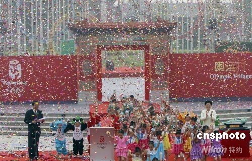 7月27日,北京奧運(yùn)村正式開(kāi)村,中國(guó)代表團(tuán)也將舉行入住儀式。圖為漫天飛花慶祝奧運(yùn)村正式開(kāi)村。中新社發(fā) 杜洋 攝