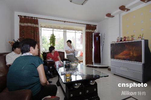 7月28日,奧運村“前村民”李美鳳一家正在自家寬敞的房子里觀看奧運村開村的相關(guān)新聞。北京奧運會場館建設中共有六千余戶家庭、近一萬五千人被拆遷安置,其中百分之八十的拆遷戶與李美鳳一樣,搬到了奧林匹克綠地內(nèi),其他的拆遷戶則被安置在新建奧運場館的周圍。 中新社發(fā) 王東明 攝