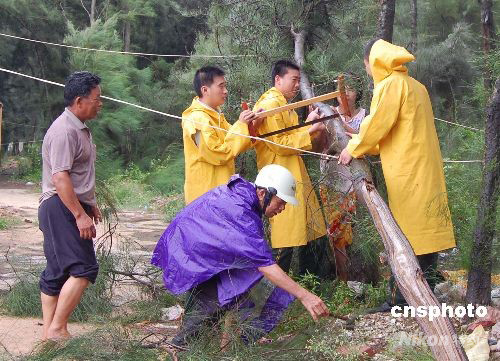 圖為福建福清邊防官兵清理橫倒在路邊的樹木和電線桿。中新社發(fā) 朱明海 攝