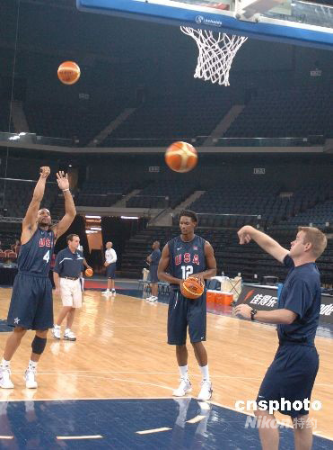 圖為七月二十八日美國男籃在澳門進行訓練。中新社發(fā) 畢永光 攝