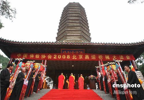 8月1日,中國(guó)佛教協(xié)會(huì)2008北京奧運(yùn)祈福大法會(huì)在北京八大處?kù)`光寺舉行,包括僧人、居士、百姓等近千人參加。中新社發(fā) 張宇 攝
