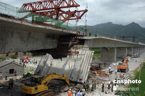 8月21日,甬臺溫鐵路黃巖金寺堂特大橋發(fā)生坍塌,2死2傷。當(dāng)日上午6時10分左右,甬臺溫鐵路浙江黃巖金寺堂特大橋(與104國道立交處)工程項目38號墩0號塊梁板發(fā)生坍塌事故,4名施工人員被埋。事故發(fā)生后,當(dāng)?shù)卣杆俳M織公安、消防全力搶救。目前,2人被240多噸的梁板壓死,另外2人被救出,無生命危險。事故原因在調(diào)查中。 [1] [2] [下一頁]