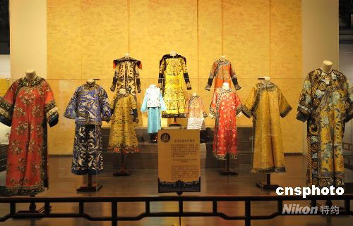 8月21日,北京故宮博物院的午門(mén)城樓展廳向游客展示了真品清朝皇家服飾,103件“天朝衣冠”集體亮相。本次展覽蘊(yùn)納著深邃而多元的中國(guó)清代文化內(nèi)涵,講述著文明古國(guó)中國(guó),賦予衣冠以明禮儀,辨尊卑的政治功能。圖為中國(guó)清代皇帝家庭著裝場(chǎng)景。中新社發(fā) 王宇婷 攝