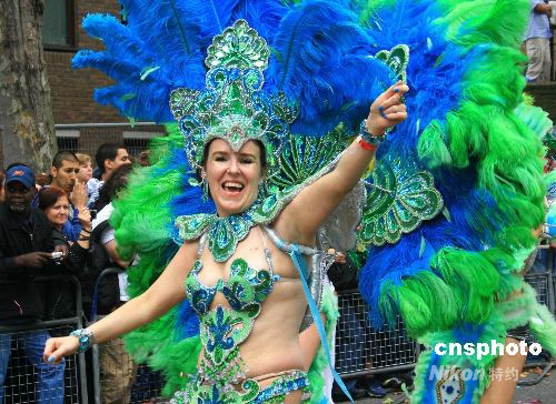 當?shù)貢r間8月25日,歐洲最大規(guī)模的街頭文化藝術節(jié)——一年一度的英國諾丁山狂歡節(jié)在倫敦舉行。圖為盛裝游行隊伍在街頭巡游表演。中新社發(fā) 李鵬 攝