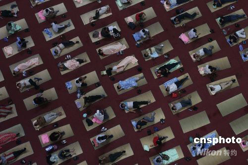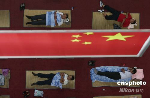 圖:華中師范大學(xué)新生家長(zhǎng)打地鋪過夜(2)