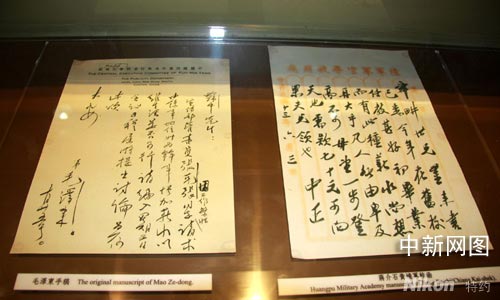 臺灣慈湖兩蔣文化園區(qū)中現(xiàn)正展出的毛澤東、蔣介石手跡。陳立宇 攝影