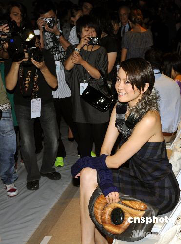 當(dāng)?shù)貢r(shí)間9月8日晚,在美國(guó)紐約市布萊恩特公園舉行的“2009紐約時(shí)裝周”上,香港明星梁詠琪,身著皮草圍脖搭配呢質(zhì)小禮服,到場(chǎng)觀秀,成為紐約時(shí)裝周上一個(gè)亮點(diǎn)。中新社發(fā) 曹堂 攝