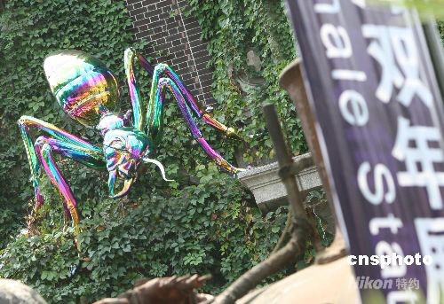 9月9日,一只巨型“螞蟻”爬上了上海美術館的鐘樓,引起了不少路人的好奇。 這只“螞蟻”是藝術家陳志光參加2008上海雙年展的作品,他以“螞蟻搬家”來演繹本屆雙年展有關城鄉(xiāng)移民的主題。中新社發(fā) 湯彥俊 攝