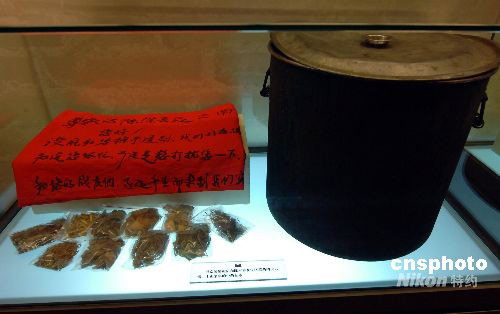 圖為由抗震英雄“神軍醫(yī)”--云南邊防總隊(duì)醫(yī)院院長陳本善使用的中草藥(標(biāo)本)和熬制中草藥湯劑的大鍋(文物)。中新社發(fā) 鄒憲 攝