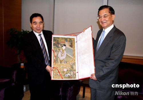 9月22日,中國國民黨榮譽主席連戰(zhàn),在臺北會見海峽兩岸出版交流20周年系列活動組委會名譽主任、新聞出版總署署長柳斌杰。柳斌杰是率團前來臺北參加紀(jì)念海峽兩岸出版交流20周年系列活動的。中新社發(fā) 陳立宇 攝