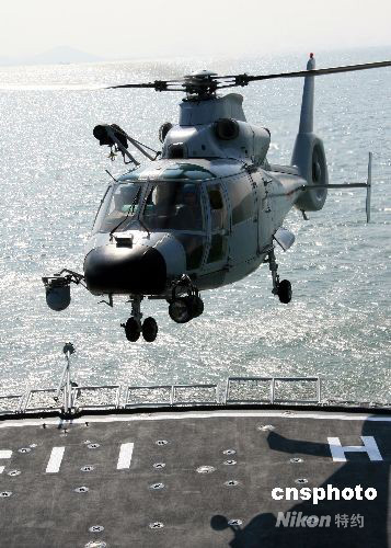 9月下旬,海軍某艦載機(jī)部隊(duì)載直升機(jī)進(jìn)行著艦訓(xùn)練。奧運(yùn)安保任務(wù)結(jié)束后,該部隊(duì)便厲兵秣馬,轉(zhuǎn)變工作思路,突出訓(xùn)練重點(diǎn)。連日來,該部在各種近似實(shí)戰(zhàn)的對(duì)抗演練中,加強(qiáng)了艦機(jī)協(xié)同、聯(lián)合反潛、海上著艦等高難度課目的訓(xùn)練力度,磨礪了部隊(duì)復(fù)雜條件下遂行任務(wù)的能力。中新社發(fā) 鄢潤波 攝