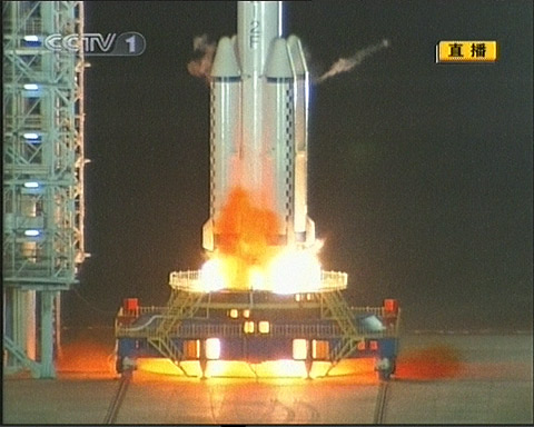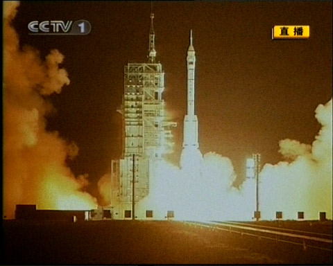 北京時間二十五日晚九時十分,中國自行研制的第三艘載人飛船神舟七號,在酒泉衛(wèi)星發(fā)射中心載人航天發(fā)射場由“長征二號F”運載火箭發(fā)射升空。