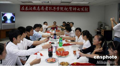 二十五日晚,當(dāng)“神舟七號”載人飛船伴隨著勝利的巨響和歡騰的煙霧飛騰在酒泉衛(wèi)星發(fā)射中心上空之時,世界各地華僑歡呼雀躍,共同為神七加油,為祖國喝彩。