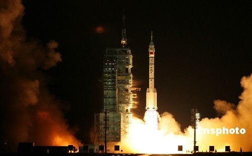 神舟七號(hào)飛船成功升空。中新社發(fā) 孫自法 攝