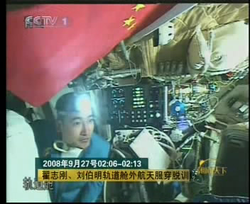 圖:神七航天員進(jìn)行艙外航天服穿脫訓(xùn)練