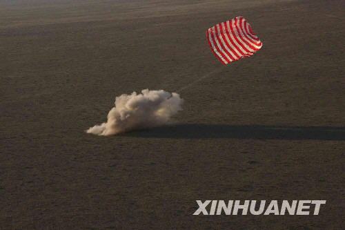 9月28日,飛船返回艙成功著陸。新華社記者王建民攝