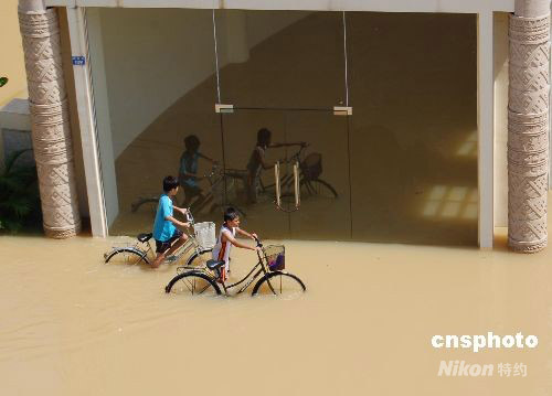9月29日,廣西南寧市邕寧區(qū)部分街道、社區(qū)、鄉(xiāng)村被洪水淹沒,受今年第14號臺風“黑格比”影響,邕江(珠江上游)等江河水位暴漲,嚴重影響了距離南寧市中心城區(qū)20余公里的邕寧區(qū),當?shù)?.7萬人受災,目前尚無人員傷亡。中新社發(fā) 劉萬強 攝