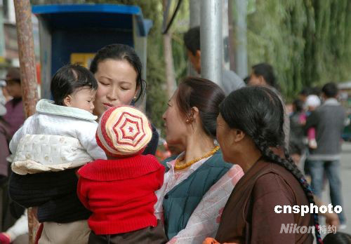 10月6日16時30分,距拉薩直線距離約76公里的西藏拉薩市當(dāng)雄縣寧中鄉(xiāng)(北緯29.8度,東經(jīng)90.3度)發(fā)生6.6級地震,拉薩市有強烈震感,持續(xù)時間約30多秒,隨后有幾次感覺明顯的余震。圖為抱著孩子的婦女在街邊暫避。中新社發(fā) 周波 攝
