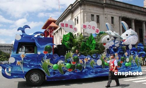 圖:臺北街頭舉行花車游行——花蓮?fù)平槁糜钨Y源