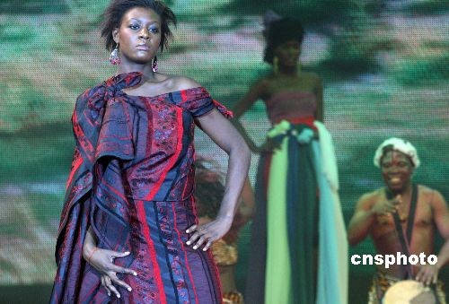 圖為模特展示色彩非洲時裝作品。中新社發(fā) 錢興強 攝
