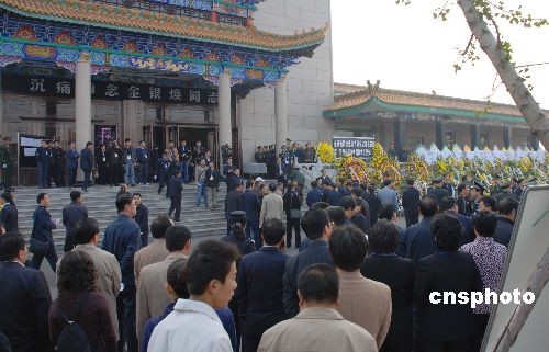 10月17日上午,山西省政協(xié)主席金銀煥遺體送別式在太原舉行。山西省政協(xié)主席金銀煥在忻州調研返并途中突遇車禍,于2008年10月11日13:40不幸殉職,終年56歲。中新社發(fā) 張雷杰 攝