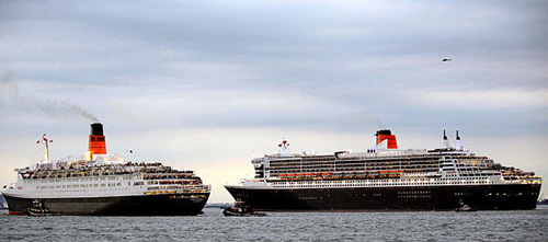 圖:英國兩艘“女王號”郵輪海上相會