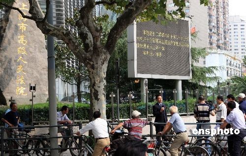 10月20日,諸多媒體在上海“高院”外關(guān)注“楊佳襲警案”審判。中新社發(fā) 潘索菲 攝